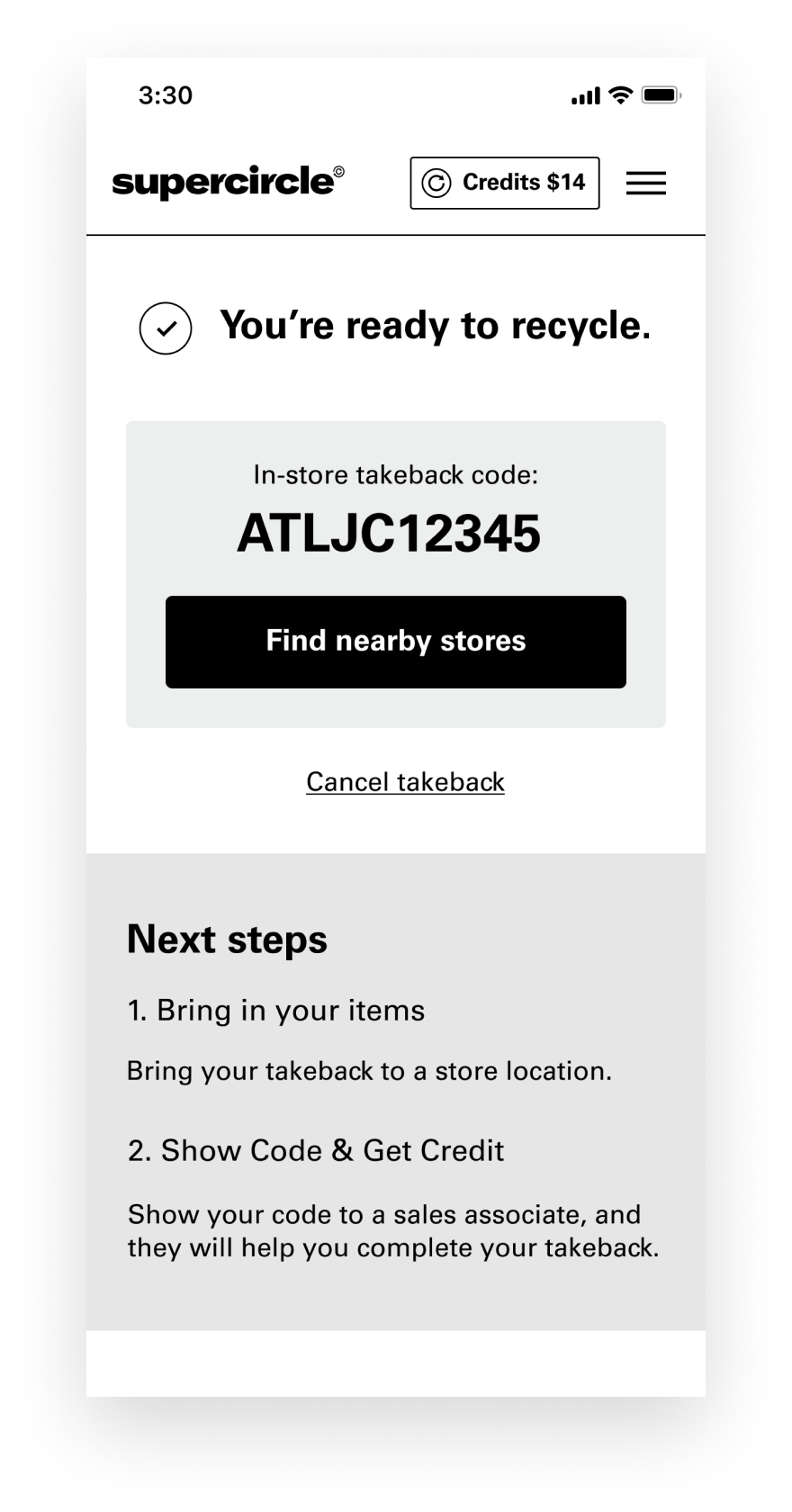 Customers can easily select the items they wish to recycle and send them to SuperCircle for recycling, all while earning credit for their contribution. In addition, the customer experience is enhanced by tracking the impact of their takeback, reinforcing the positive effects of their participation.